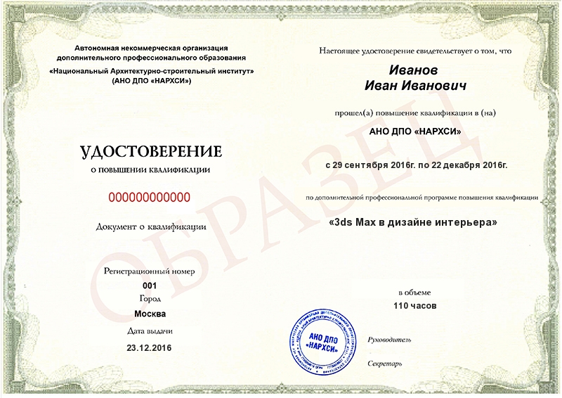 Учебный план программы повышения квалификации «3ds Max в дизайне интерьера»