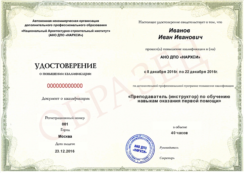 - Образец удостоверения о повышении квалификации.