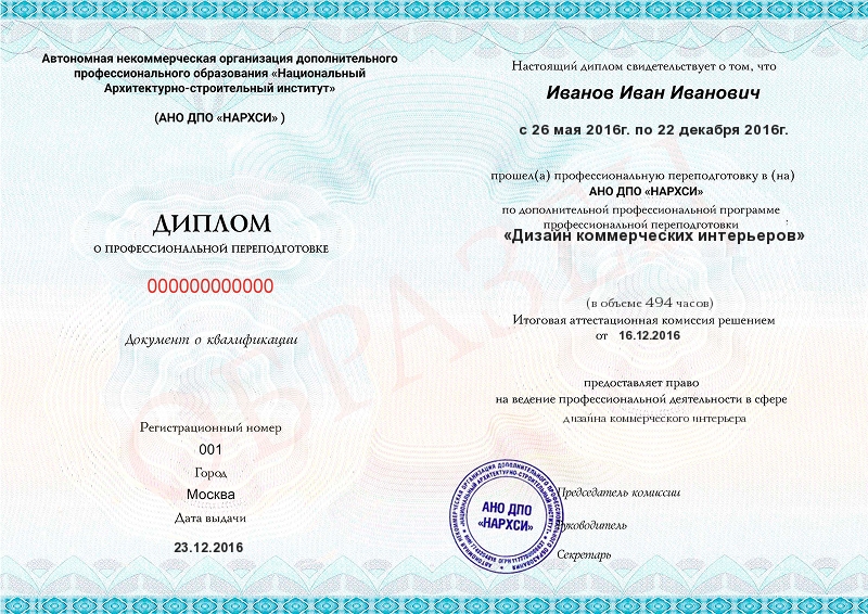 Диплом о профессиональной переподготовкеДиплом действует на территории всей России и признается государственными и частными организациями