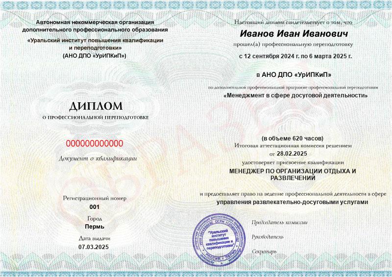 Обзор программы профессиональной переподготовки «Менеджмент в сфере досуговой деятельности» с присвоением квалификации «Менеджер по организации отдыха и развлечений»
